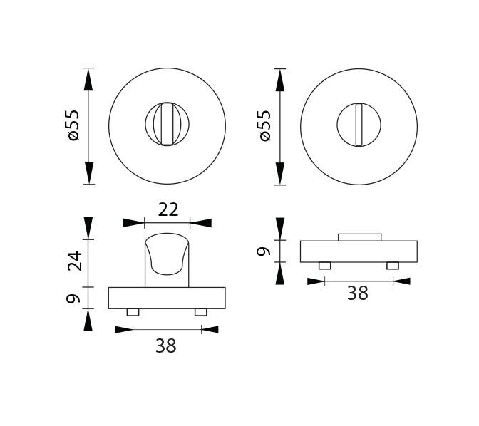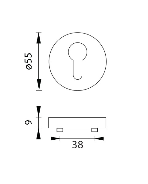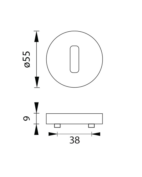 Nerezová rozeta pod kliku - ve variantách pro obyčejný klíč, cylindrickou vložku nebo s WC kličkou.