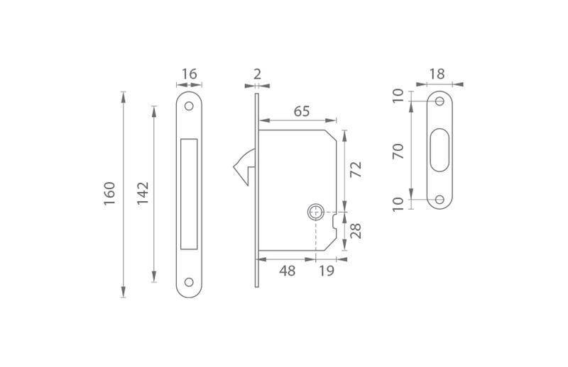 Zámek na posuvné dveře 61/50 WC - zadlabací zámek pro posuvné dveře pro mušle s WC zamykáním