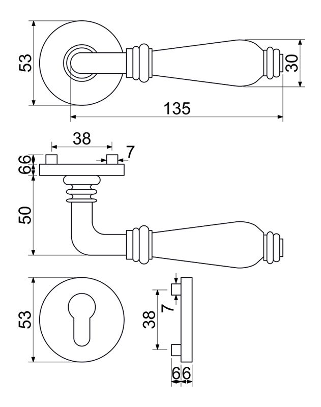 - na kulaté rozetě s možností volby v konfigurátoru ( BB dozický klíč, PZ pro vložku nebo WC provedení)