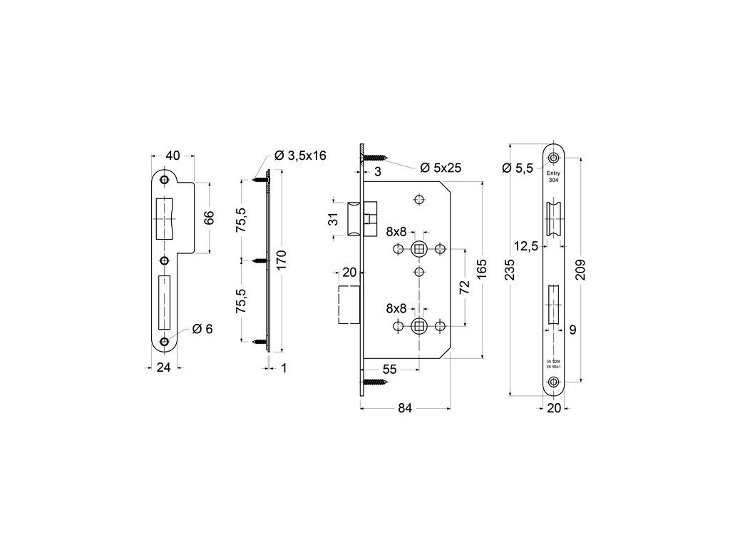 RICHTER zadlabací zámek EN.304.WC.72.55.20.PL - je zátěžový nerezový zadlabací zámek na WC zamykání, v rozteči 72 mm, praktický doplněk pro vaše dveře.