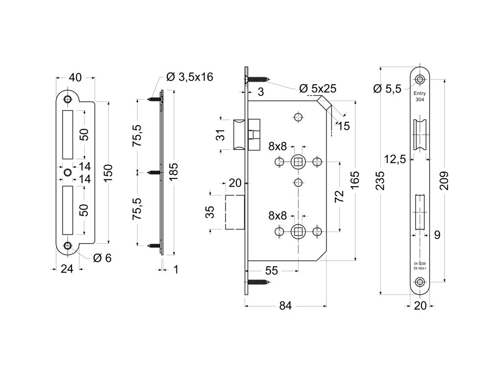 RICHTER zadlabací zámek EN.304P.WC.72.55.20.PL- je zátěžový nerezový zadlabací zámek na WC zamykání, v rozteči 72mm, praktický doplněk pro vaše dveře s plastovou střelkou, která zaručuje tiché dovírání dveří.