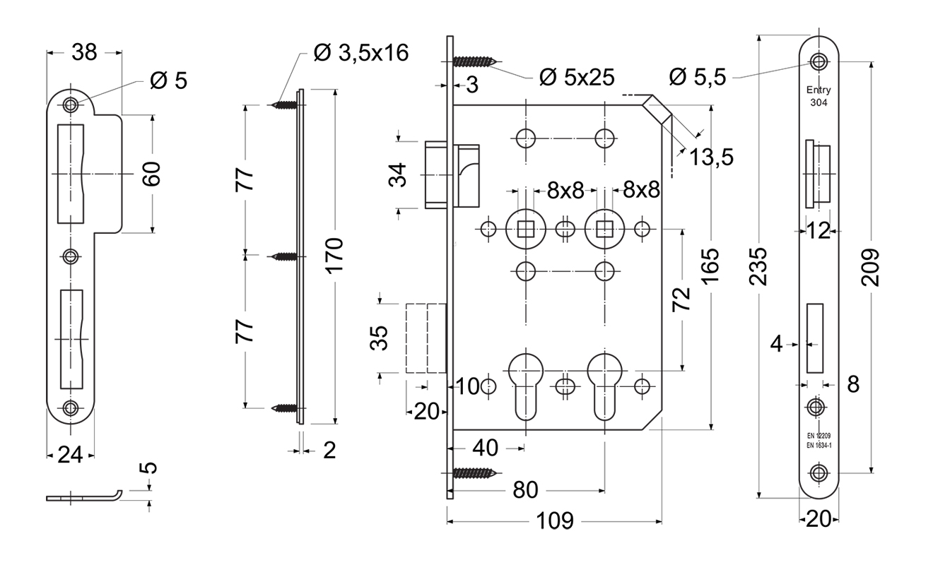 zadlabací zámek pro interiérové i vybrané technické dveře