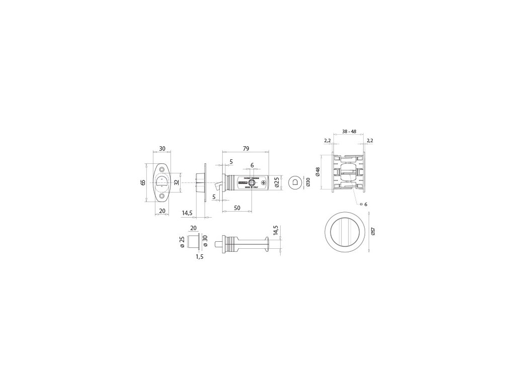 HookyZERO Set pro posuvné dveře SAB R OC (kulatý) - oblíbený set se systémem zamykání pro WC, koupelna v kulaté variantě.